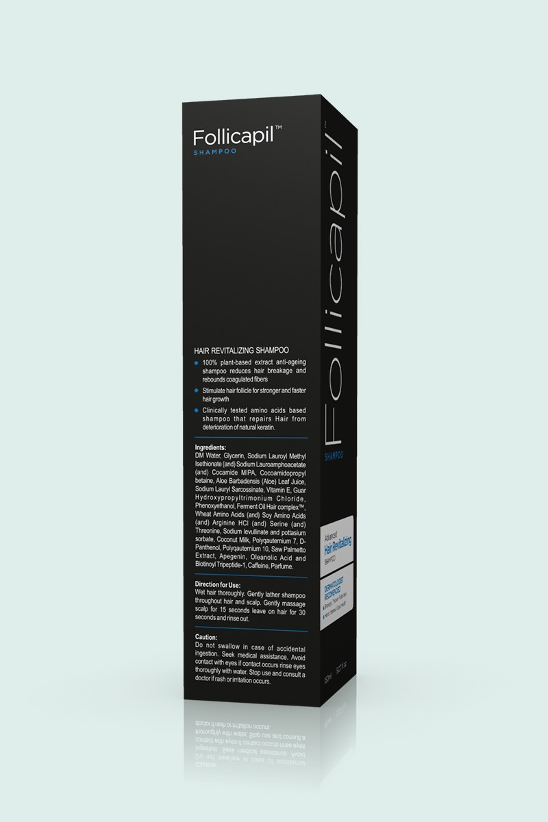 FOLLICAPIL SHAMPOO- Follicapil shampoo is an advanced hair revitalizing shampoo which improves scalp health and enhances STRONGER, THICKER & FULLER HAIR.