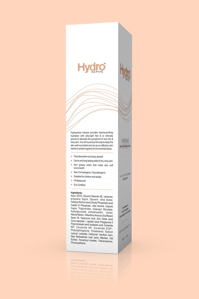 Hydro active Intense is a daily use moisurizing lotion which provides long lasting intense hydration with an ultra light feel. It is clinically proven to relieve the symptoms of dry and itchy skin. It keeps your skin well nourished, plumped and acts as a barrier against environmental stress on your skin.