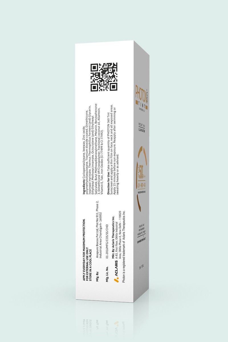 PHOTON 360 TINT SUNSCREEN- Photon 360 Tint delivers long protection against UVA/UVB, High Energy Visible rays/Blue light and Infrared rays WITH NON OILY & SILKY TOUCH TEXTURE.