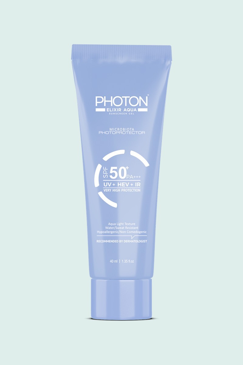 Photon Elixir Aqua protect and maintain the microbiota of skin and provides very high protection against UVA/UVB rays, Blue Light & Infra-Red radiation with ultra-light texture.
